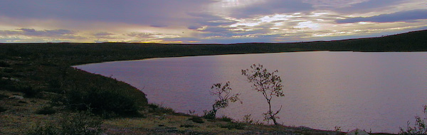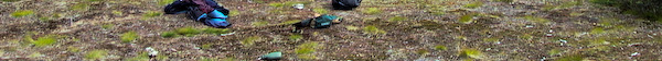 14.30: Valmiina lähtöön. Matka on lyhyt. Čuvgesjohkaa ei kannata lähteä seuraamaan, koska joki tekee jopa 180 asteen mutkia, siksi nousemme ylös harjulle ja seuraamme poronpolkua etelään.