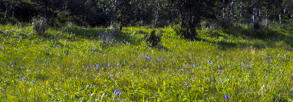 Täällä hallitsevat mäkärät ja paarmat. Ilma on kuuma, hyvä ettei tätä suuniteltu vaelluspäiväksi. Joen varrella on todella kaunista. Čuvgesjohkan jokilaakso on ikivanha ja syvä. Itse joki kiemurtelee sen pohjalla mielipuolisia mutkia tehden. Jokilaakson pohja on suurelta osin tähän aikaan vuodesta tulvaniittyä, jolla kasvaa heinää ja kukkia.
